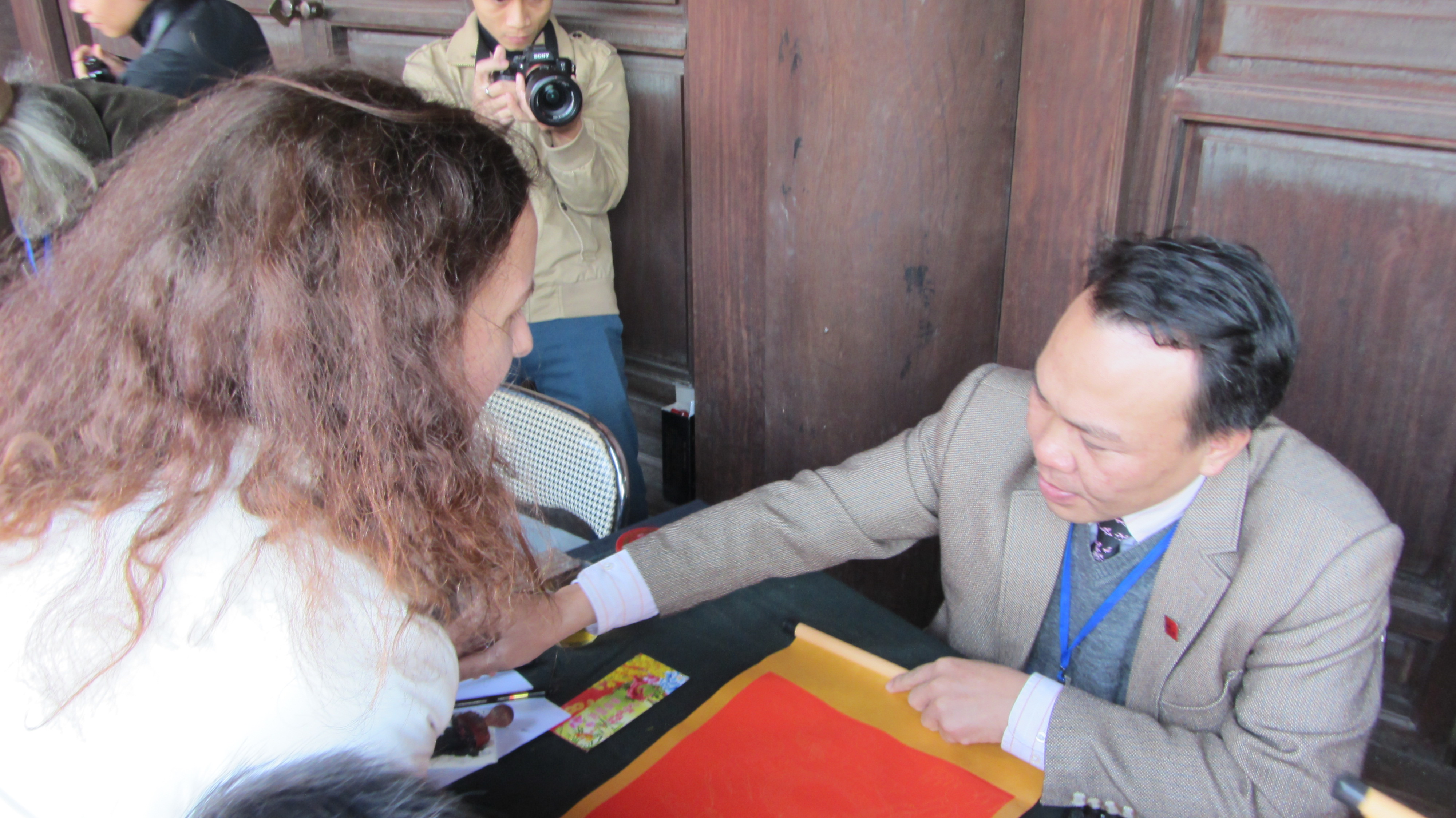 Ван-Мьеу часто посещают ханойские школьники и студенты, особенно, перед экзаменами. Обычно люди приходят сюда, чтобы попросить написать на специальной бумаге иероглифы, связанные с учёбой. Однако в новогодние дни они просят написать иероглифы, означающие благополучие, счастье, здоровье и т.д. Пройдя мимо каллиграфов, Наталья вдруг остановилась: