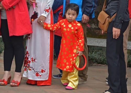 Теперь понятно, почему она выбрала именно Храм литературы для своей новогодней прогулки. Пока чернила высыхали, Наталья поделилась своими размышлениями о вьетнамском традиционном новогоднем празднике (Тэт): «Мне очень много рассказывали о Ханое в дни Тэта. Говорят, что здесь такое наслаждение – народ разъезжается. И действительно прекрасно, к тому же сегодня замечательная погода. Все детишки нарядные или в народных костюмах, что очень мило. На самом деле такая, казалось бы, очень простая вещь даёт представление сразу о двух факторах: первое, забота родителей о детях – видно, что они стараются; второе, это сохранение народных традиций. Мне нравится, что во Вьетнаме традиция надевать народные костюмы не ушла в прошлое. На всех праздниках, важных мероприятиях и даже на телевидении люди надевают вьетнамское платье «аозяй»».