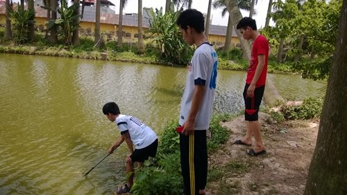 Хо Ань Киет - студент 3-го курса, глава группы по разведению аквапродуктов говорит: «Наша группа состоит из 15-и членов и десятков помощников. Факультет предоставил нам пруд площадью 2000 квадратных метров и сами мы также пожертвовали 150 тысяч донгов на каждого для разведения карпов породы «VL». Мы сотрудничали с выпускниками нашего института в приобретении 40 тысяч породистых карпов с льготами».