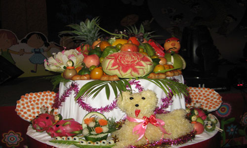 Неотъемлемой частью праздника середины осени является поднос с фруктами, лунными пирогами «бань-ныонг» и «бань-зео», а также спиртным напитком. Причём пироги «бань-ныонг» и «бань-зео» квадратной и круглой формы символизируют небо и землю,. Хозяин дома преподносит праздничный поднос своим предкам и духу Луны. Хотя дети бегают за танцевальными командами или играют в народные игры с друзьями, они никогда не забывают вернуться домой, где вместе с родными наслаждаются прелестью лунного света, а также угощаются лунными пирогами и фруктами. При свете луны дети танцуют, поют и играют с фонариками.