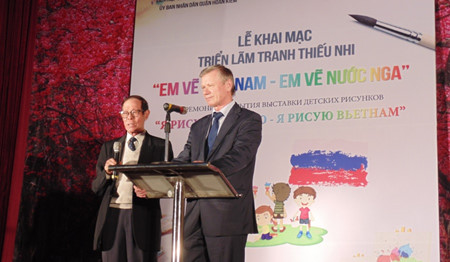 (VOVworld) - С 30 марта по 1 апреля в Ханое прошла выставка детских рисунков «Я рисую Россию – Я рисую Вьетнам». Это значимое мероприятие направлено на дальнейшую активизацию традиционных отношений между Вьетнамом и Российской Федерацией среди молодёжи. Выставка отражает желание детей укреплять и развивать дружбу между двумя странами.