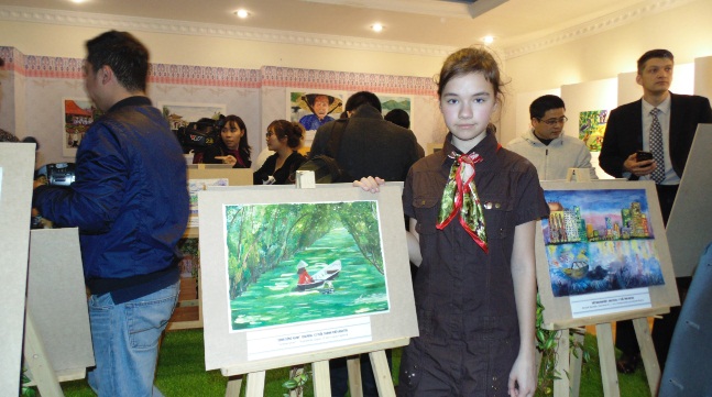 Выставка детских рисунков была организована Обществом вьетнамо-российской дружбы, Союзом ханойских обществ дружбы, Народным комитетом района Хоанкием и Обществом российско-вьетнамской дружбы. На ней было представлено около 70 рисунков детей в возрасте до 16 лет из России и некоторых стран бывшего Советского Союза, а также вьетнамских детей, проживающих в Российской Федерации. Это рисунки, авторы которых были награждены призами или получили высокую оценку на первом Международном конкурсе детского рисунка «Я рисую Россию - Я рисую Вьетнам», организатором которого стало Общество российско-вьетнамской дружбы в 2015 году по случаю 65-летия со дня установления дипломатических отношений между двумя странами. Выступая на открытии выставки, заместитель председателя Народного комитета города Ханоя Ле Хонг Шон подчеркнул: «Я уверен, что эти картины были написаны детьми от всего сердца и любви к Вьетнаму и России. Мы отмечаем чувства детей и высоко оцениваем их ценный вклад в эту значимую выставку. Это одно из реальных мероприятий, способствующих дальнейшему укреплению традиционной дружбы между народами Вьетнама и России».