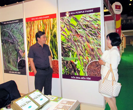 | Органический рис марки «Хоа-шыа» представлен на выставке в Дубае, ОАЭ. Фото: Tran Quoc Thai |