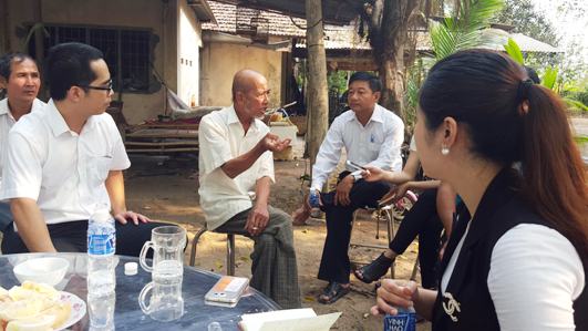 | Крестьянин Во Ван Тэн (в центре) разговаривает с работнками банка. Фото: VNA |