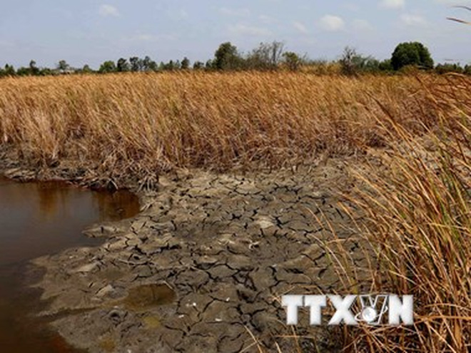 | Серьезная засуха и поступление морской воды в провинции Камау. Фото: VNA/ Kim Ha |