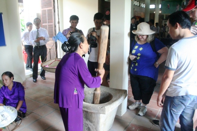 Кроме того, иллюстрированные рассказы и поговорки о деревне, характерные для земли Хюэ, также представлены в этом доме-музее, что привлекает большое внимание туристов и посетителей. Местный экскурсовод Нгуен Тхи Кием далее рассказала: «Поговорка «Рис и рыба, как мать и дочка» означает, что рис и рыба являются главными блюдами в семейном рационе. Это как любовь матери к детям».