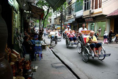 Наверняка, туристам больше всего нравится передвигаться по старинному кварталу на велорикшах и электрических экскурсионных автобусах. Люди уже давно привыкли к изображению длинных колонн велорикшей и автобусов с туристами, держащими в руках фотоаппарты и видеокамеры. Для многих побывать на старинных улицах – это вернуться в далёкое прошлое. 36-летний Дэвид Лоу из Ливерпуля поделился своими размышлениями: «Здесь мне нравится выходить на улицу, так как везде очень весело. В старинном квартале за 5 минут вы можете увидеть очень многое. Этот район делает Ханой более шумным и привлекательным. Приехав сюда, все люди понимают, что они находятся в бурно развивающемся городе, где жители всегда куда-то спешат. Звуки, запахи, изображения – всё кажется уникальным».