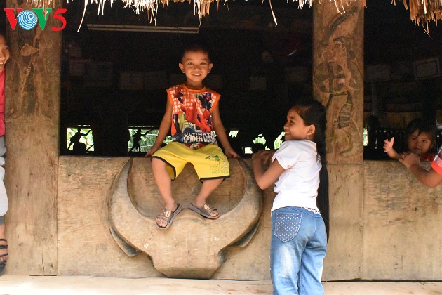 После репетиции А Ланг Бать возвращается в дом на сваях, где мужчины делают праздничный бамбуковый шест «нэу» и детские игрушки. Висящая на небольшой бамбуковой палке банка из-под пива с белыми камнями внутри издаёт весёлые звуки. Как утверждает По Ланг Ты, в детстве ему очень нравилась эта игрушка: «Мы делаем игрушки для детей. У нас погремушка является одной из самых популярных детских игрушек. Раньше мы также закалывали буйвола или корову во время праздников и в случае, если кто-то сильно заболел».