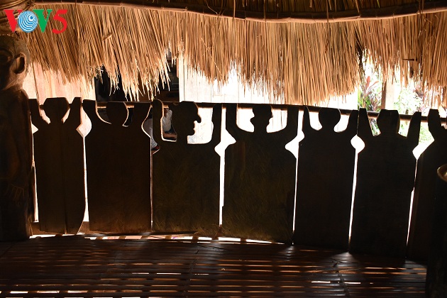 В то утро площадка перед домом на сваях «Гыол» была ещё сырой от недавнего дождя, хотя деревья уже утопали в тёплых лучах солнца. Несмотря на это, женщины не переставали исполнять традиционный танец «тунг-тунг-зя-зя» под звуки барабана. Можно было легко заметить их красные вспотевшие лица – 20 танцовщиц из разных селений общины Ланг готовились к приближающемуся фестивалю малых народностей Вьетнама, который пройдёт в центре уезда Тэйзянг.