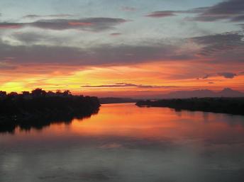 | Красная река во время заката |