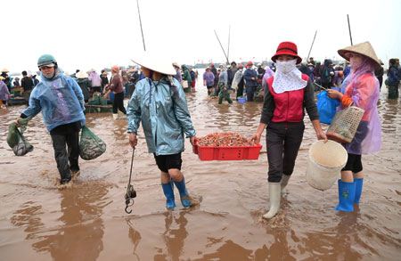 Как продавцы, так и покупатели – все пользуются хорошим авторитетом, поэтому никогда не возникают какие-либо претензии. Шум на рынке быстро смокает после часа интенсивной торговли. Рыбу, креветки и кальмаров кладут в пенопластовые коробки со льдом, после чего их увозят на мотоциклах и небольших грузовиках на другие рынки. Всё повторяется заново в 4 часа вечера, когда рыболовные суда вновь причаливают с новой партией улова. Оживлённая атмосфера на рынке говорит о благополучной жизни местных рыбаков. По статистическим данным, сюда постоянно причаливает, примерно, тысяча судов разных размеров. Каждый лов длится 12 часов: 2 часа на путь к месту лову и обратно и 10 часов на добычу морепродуктов. Общие затраты составляют 2,5-3 миллиона донгов на один выход в море. Выручка от продажи, обычно достигает 5-6 миллионов донгов, а в сезон размножения, когда можно поймать больше рыбы, креветок, кальмаров, медуз становится еще больше. Добывать морепродукты – это так же, как ходить на рыбалку – результат во многом зависит от погоды и времени года. Однако местные рыбаки работают круглый год, несмотря на большие финансовые риски. Вот что об этом сказала Нгуен Тхи Мо: «На топливо и еду уходит как минимум 2,5 миллиона донгов. Если улов большой, то выручка от продажи тоже большая, в противном случае мы практически ничего не получаем».