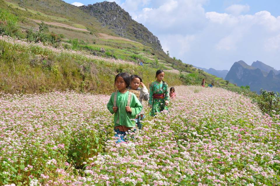 Гречиха особенно пышно распускает цветы с октября по ноябрь месяц. Эти бело-розовые цветы придают скалистому рельефу некий романтичный вид, привлекая внимание туристов. Гречиха растёт в основном у подножий гор в уездах Куанба, Йенминь, Меовак и Донгван. Как утверждает туристка из Ханоя Май Хыонг, раньше она знала лишь главные достопримечательности провинции Хазянг: каменное плоскогорье, флаговую башню Лунгку, родовой храм династии Выонг и легендарный перевал Мапиленг. Именно поэтому, приехав сюда, она была поражена красотой бесконечных полей гречихи. Май Хыонг сказала: «Думаю, что все приехавшие сюда туристы восхищаются местными жителями. Вокруг одни лишь горы и скалы, но люди научились выращивать кукурузу на неплодородной почве, чтобы победить голод. На склонах растёт кукуруза, а на ровной поверхности – гречиха. Удивительно, когда с одной стороны возвышаются гиганткие скалы, а с другой – спокойно зацветает гречиха. В этом также скрывается и философское значение: жизненная сила в мёртвом краю».