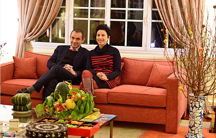 | Посол Франции во Вьетнаме Жан-Ноэль Пуарье и его жена встречают вьетнамский Новый год. Фото: zing.vn |