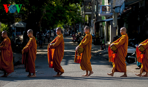 Как обычно, по воскресеньям буддийские монахи провинции Тхыатхиен-Хюэ просят милостыню на улицах города Хюэ, что отражает красоту буддийской культуры этой земли.