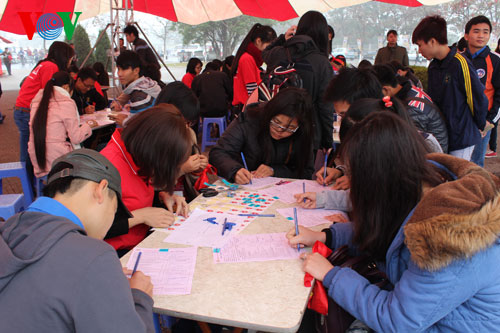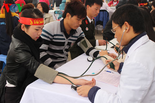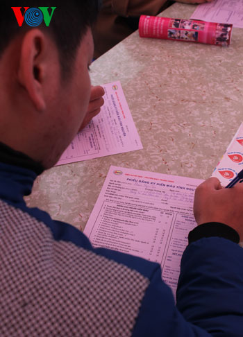 Несмотря на холодную погоду, в воскресенье утром тысячи человек пришли на ханойский стадион «Мидинь» для участия в празднике «Весна для доноров» - добровольной сдаче крови.