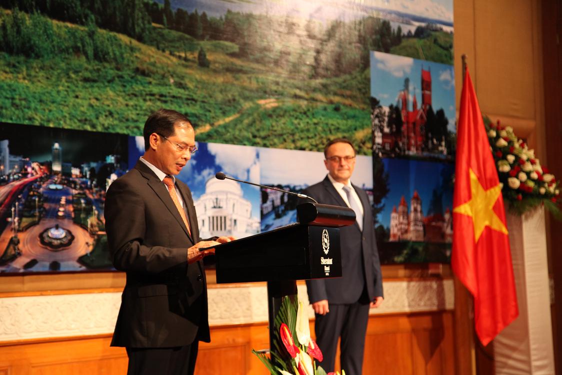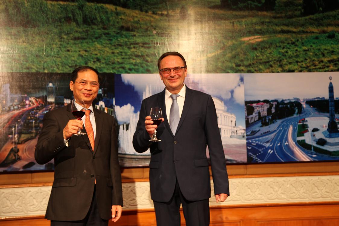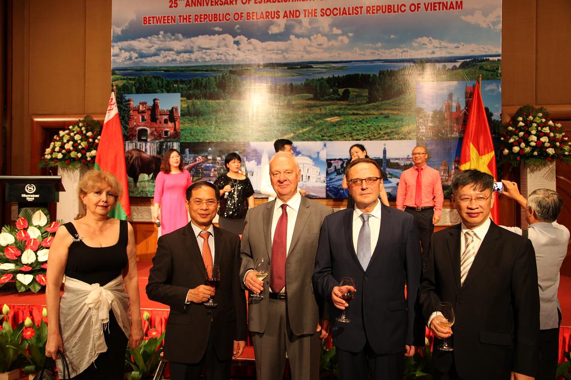 (VOVWORLD) - Вечером 19 июня посольство Республики Беларусь во Вьетнаме организовало в Ханое государственный приём по случаю Дня независимости Республики Беларусь (3 июля). В данном мероприятии приняли участие иностранные дипломаты, представители разных министерств и отраслевых ведомств Вьетнама, международных организаций и бизнес-кругов, а также вьетнамцы, получившие образование или работавшие в Беларуси. Напомним, что ровно 25 лет назад были установлены дипломатические отношения между двумя странами.