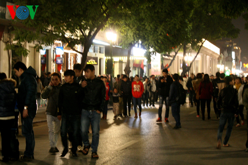 (VOV) – Десятки тысяч жителей вьетнамской столицы Ханой провождают последние моменты старого года и встречают Новый 2014 год вместе на улицах и в общественных местах, а также желают друг другу всего наилучшего.