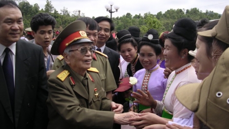 Генерал армии Во Нгуен Зяп во время возвращения в Диенбиенфу