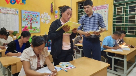 (VOVWORLD) - В последнее время в деревнях и обшинах уезда Мыонгне провинции Дьенбьен открылось большое количество классов по искоренению неграмотности. Эти классы постепенно повысили интеллектуальный уровень местных жителей.