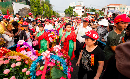Праздник Первого полнолуния начинается шествием с паланкином богини Мацзу. В рамках праздника также проводится аукцион святых ламп. В этом мероприятии принимают участие многие отечественные компании, большинство из которых – компании представителей народности Хоа. По итогам этого мероприятия ежегодно оргкомитет собирает 3 – 5 млрд. донгов на благотворительность и реализацию проекта обучения родному языку народности Хоа в начальной школе имени Ле Ван Тама в городе Тхузаумот.