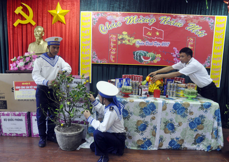 Как и во всех других уголках страны, военнослужащие и жители островного уезда Чыонгша проводят различные новогодние мероприятия. На всех островах были организованы художественные программы с простыми, но в то же время интересными номерами, помогающими скрасить тоску по родному дому. Старший матрос Хоанг Ван Хай несёт службу на острове Намйет. Здесь его семьёй являются товарищи по оружию. По его словам, культурные и спортивные мероприятия помогают офицерам и матросам поднять боевой дух: «Я очень рад, что сегодня имею возможность принять участие в художественной программе и розыгрыше призов. Такие мероприятия очень интересны и полезны. Встреча Нового года вдали от материка помогает людям сблизиться друг с другом. В новогодние дни мы готовим рисовые пироги «чынг», играем в шахматы и перетягивание каната. Всё это создаёт семейную атмосферу».