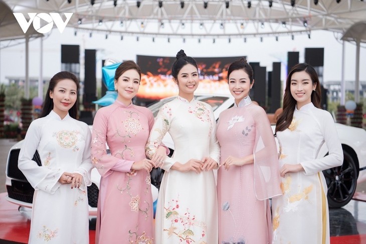 Мисс и известные люди в аозай на одном из мероприятий в провинции Куангнинь. Фото: VOV |