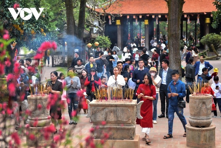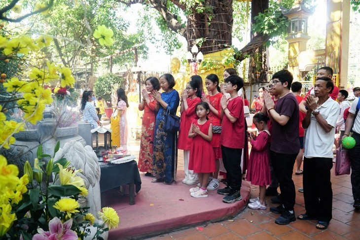 Традиция посещать храмы и пагоды в начале лунного нового года остается важной частью культуры вьетнамцев и продолжает передаваться из поколения в поколение. Фото: VOV |