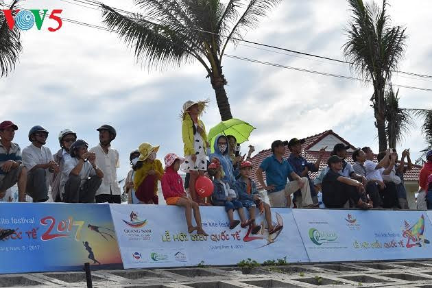 (VOVWORLD) - Представители 9 государств и территорий мира запустили разноцветные воздушные змеи в небо над городом Хойаном и морским пляжем Тамтхань, что создало оживлённую атмосферу, воодушевившую местных жителей и туристов. В международном фестивале воздушных змеев 2017 в провинции Куангнам приняли участие 90 мастеров из разных провинций и городов Вьетнама (Хошимин, Ханой, Тхыатхиен-Хюэ, Дананг, Хайфон, Куангнам...), а также 22 мастера из Канады, Японии, Республики Корея, Китая, Малайзии, Тайваня, Индонезии, Таиланда и Новой Зеландии.