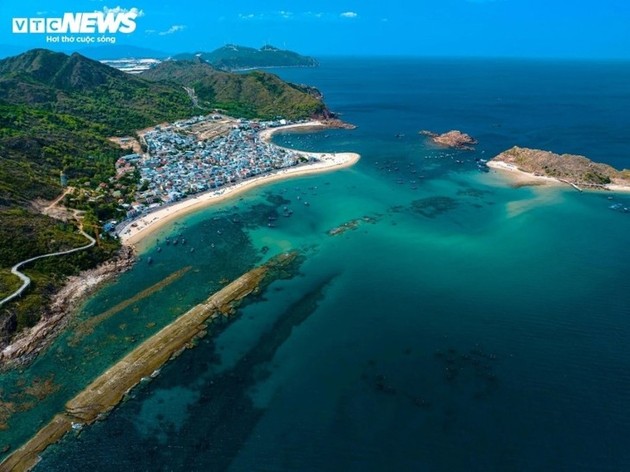 Расположенный примерно в 18 км к северу от Куинёна, остров Хонкхо в общине Ньонхай известен своими приморскими коралловыми рифами и потрясающими зарослями морских водорослей, которые очаровывают как туристов, так и фотографов. Фото: VTC News.