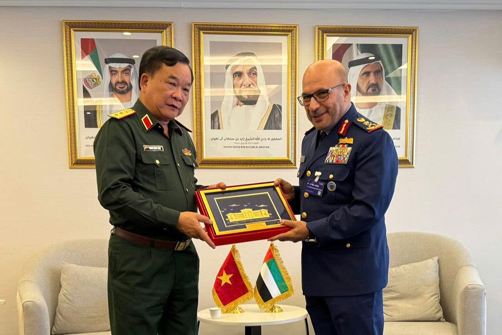 В рамках своего рабочего визита и участия в Международной авиационной выставке Dubai Airshow 2025 в Объединённых Арабских Эмиратах замминистра обороны Вьетнама, генерал-полковник Хоанг Суан Тьен провёл встречу с заместителем министра обороны ОАЭ, генерал-лейтенантом Ибрагимом Нассером Аль-Алави.