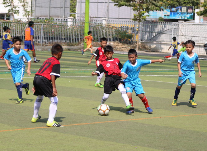 Вьетнамские и тайские молодые игроки Центра «S&A Academy» в матче по футболу. Фото: H.D |