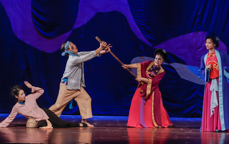 The drama entitled Tấm Cám of by the Le Ngoc Theater is being performed at the Dai Nam and Hong Ha theater, Cultural Friendship Palace, and the Hanoi Opera House. The play is based on a Vietnamese folktale about two half-sisters: Tấm the eldest and Cám, the youngest. Tấm's mother dies early and her father remarries before himself dying soon after. Tấm lives with her stepmother, who is Cám's mother. The stepmother is very sadistic and makes Tấm do all the housework, whereas Cám does not have to do anything. In a stroke of luck, the King marries Tấm. The stepmother and her daughter try many times to harm Tấm in order to cause Cám to replace Tấm as the Queen.