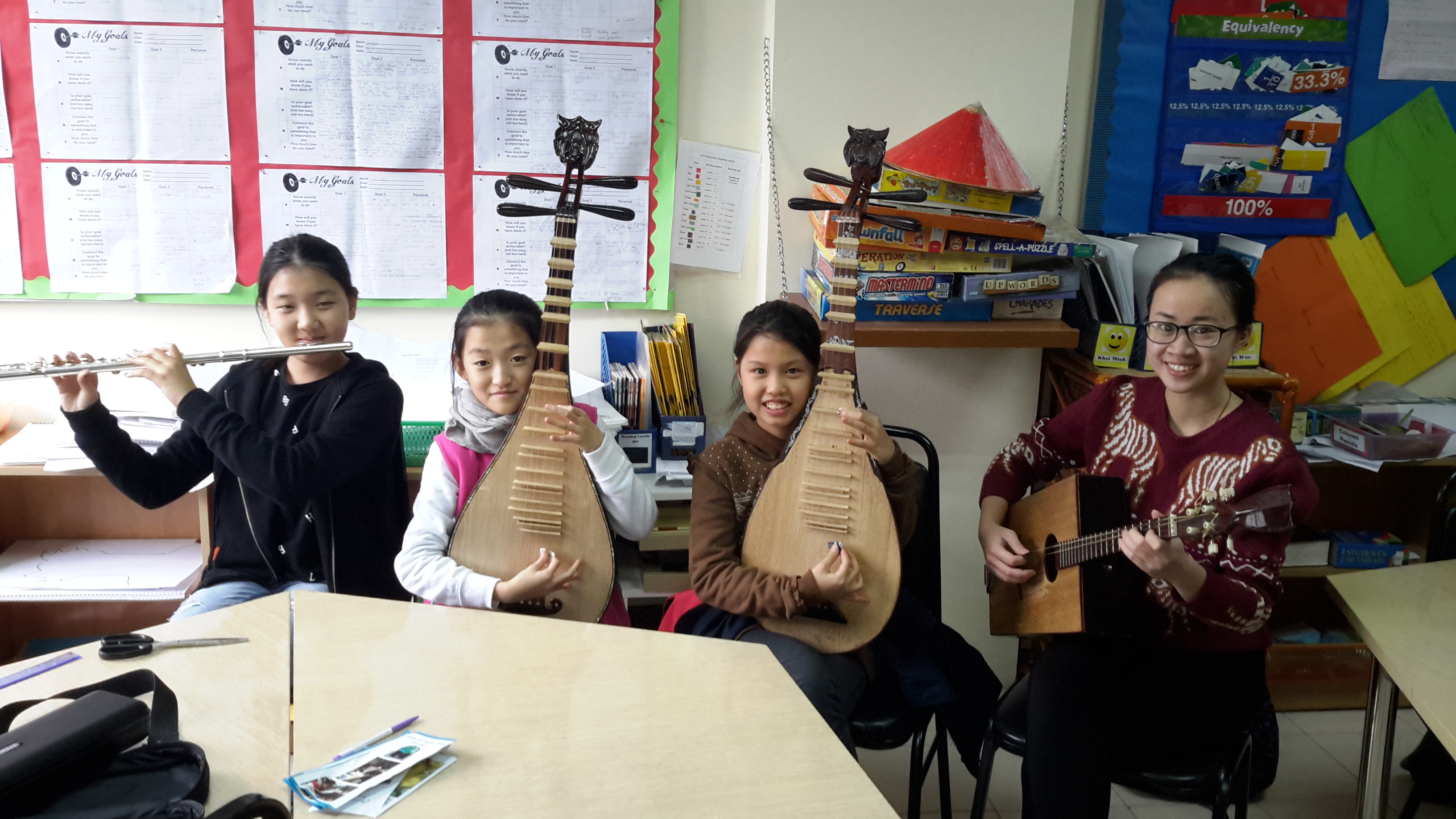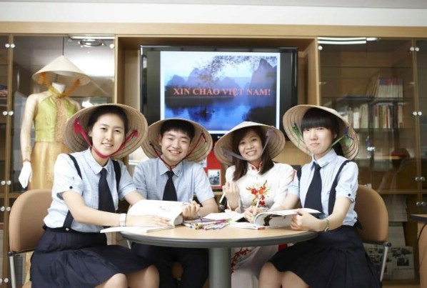 Korean students are learning to play Vietnamese musical instruments