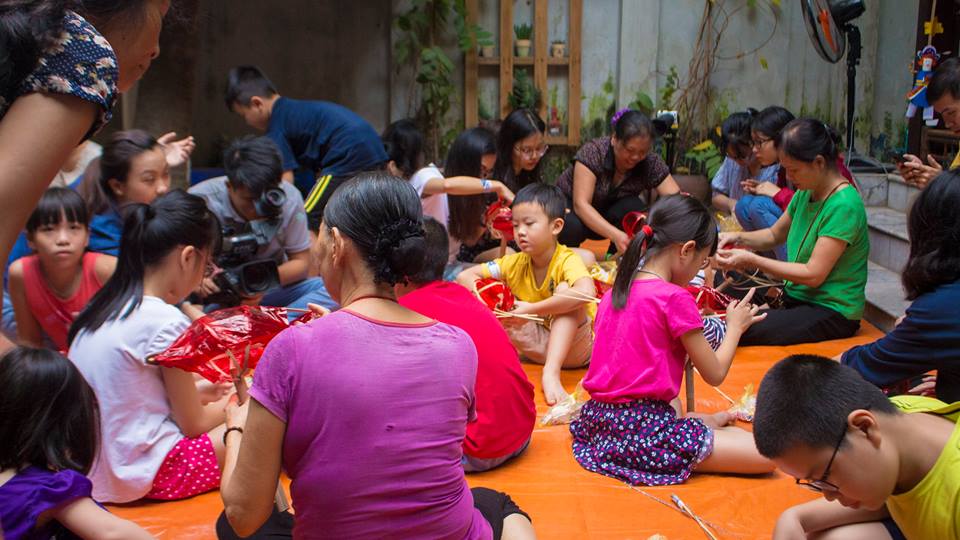 The Hanoi 1010 Cultural Exchange Space at 32 Vong Thi street, Buoi Ward, Tay Ho Dist, Hanoi was packed with parents and their children and many students, who were there to learn to make traditional Mid-Autumn toys with artisans. This workshop was hosted by My Hanoi. Nguyen Thuy Hang from My Hanoi said: “My Hanoi organized this workshop as the opening event for a series of events celebrating Mid-Autumn Festival in September. The aim of this workshop is to preserve this ancient Vietnamese craft in the hope that traditional Mid-Autumn toys will not be replaced by imported toys and that the festival’s spirit will be kept alive.”