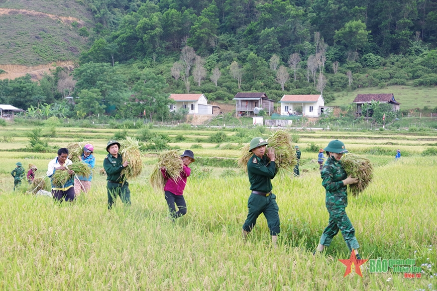 The border soldiers help Chut people harvest rice.