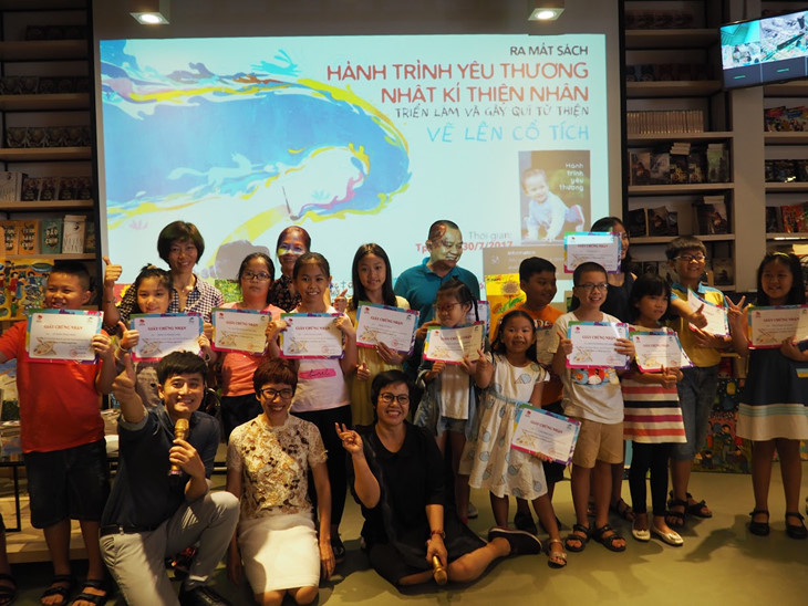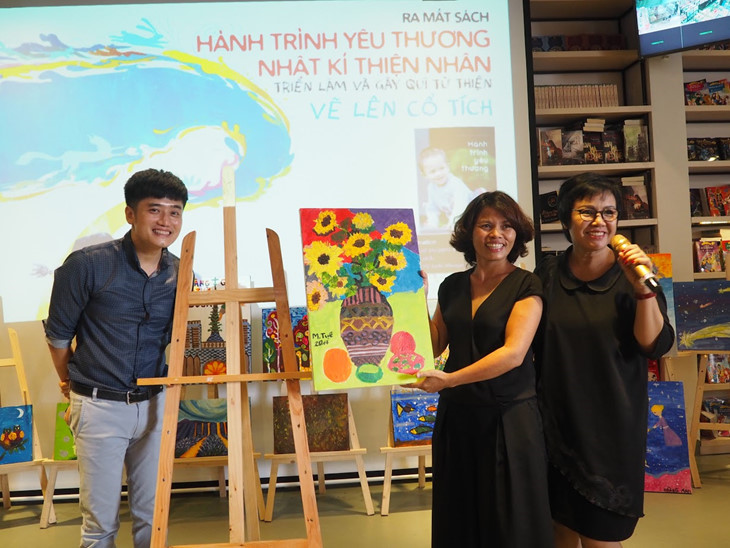 Mrs. Tran Mai Anh, Thien Nhan’s adopted mother, who manages the Thien Nhan and Friends Fund program, was at the auction. Mai Anh said that the “Drawing a fairy tale” competition is more than a charity program in which children help other children. The children plant seeds of generosity and compassion in society. Anh said: “The “Drawing a fairy tale” program was the idea of artists from the Kim Dong Publishing House and the Thien Nhan and Friends Fund. We encourage children to create paintings that can be sold to support children who need reconstructive surgery like Thien Nhan. This is a very meaningful program which encourages children to help others.”