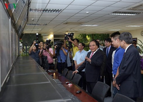 Prime Minister Nguyen Xuan Phuc (third from right) visits VOV Traffic Channel in September, 2018. |