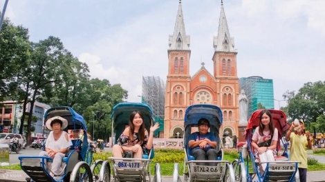 (VOVWORLD) - Touring by cyclo, three-wheel taxi, has long been an tourist attraction in Vietnam. In Ho Chi Minh city, tourists often choose cyclos to leisurely explore the city's landscapes and local life.