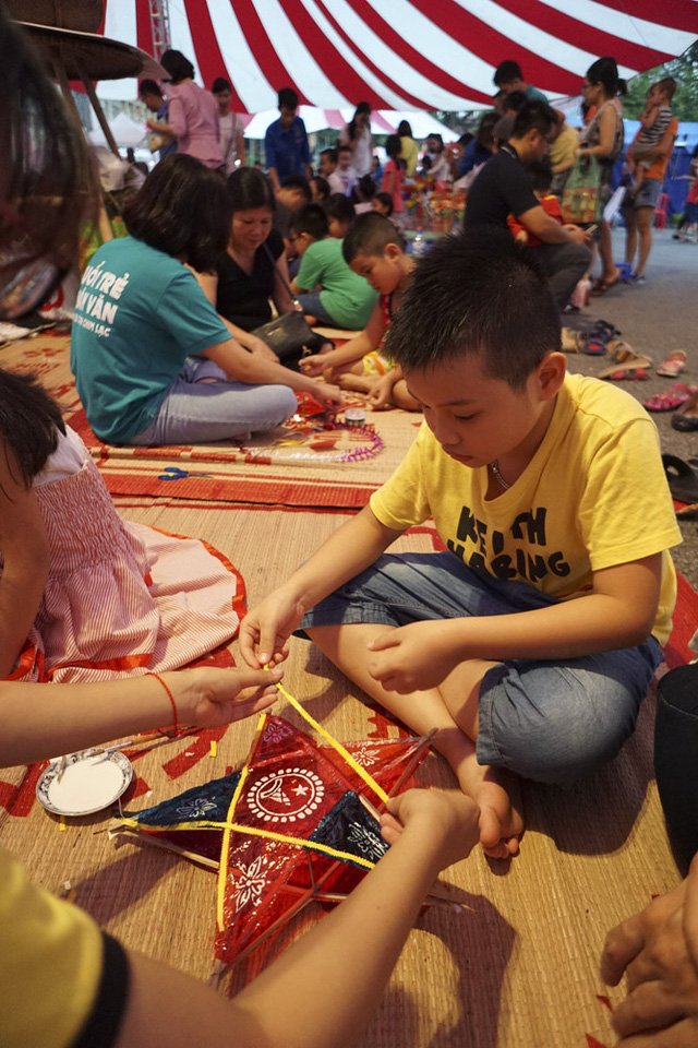 Quyen said: “There are 2 types of cylindrical lanterns. In the past, a cylindrical lantern had either 4 or 6 sides. Now all have 6 sides. Making the lanterns can help children learn patience and increase their creativity.”