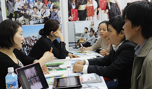 | Vietnamese students learn about education in Japan at a fair in Ho Chi Minh City. (Photo: tuoitrenews.vn) |