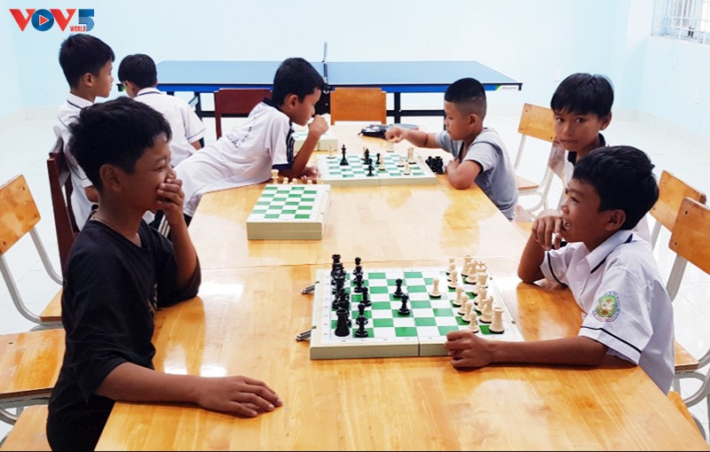 Students play chess during a break at Ninh Phuoc Secondary Boarding School for Ethnic Minority Students. (Photo: Ngoc Anh/VOV5) |