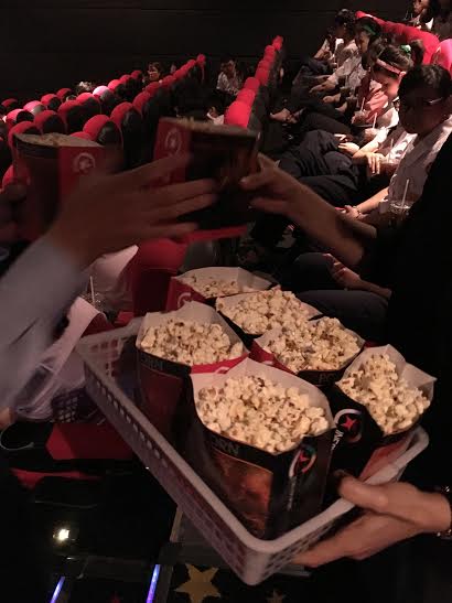 | Visually impaired students are served with popcorn during the screening. (Photo: vietnamnet.vn) |