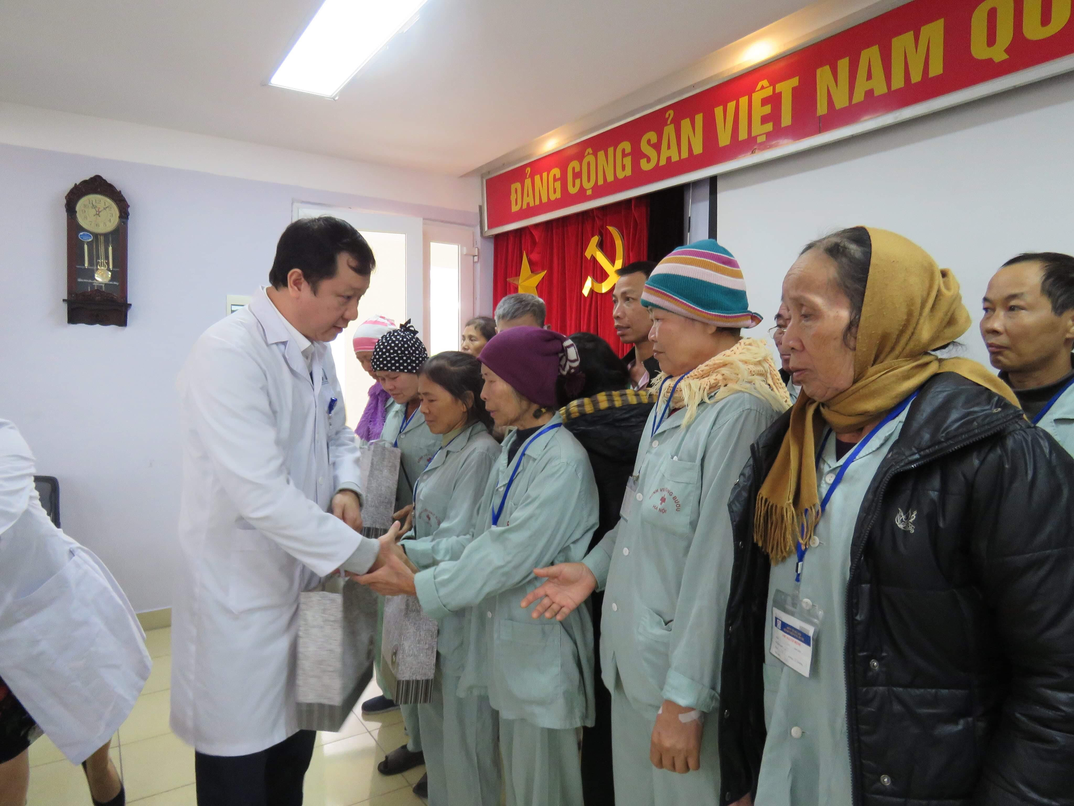 Professor, Doctor Nguyen Vinh Quang, Director of Hanoi Oncology Hospital, personally hands the gifts to the patients. (Photo: VOV.VN)