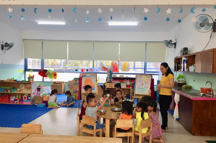 Binh said teachers record the children’s activities every day to help the parents keep track of their eating, learning, and playing at school.