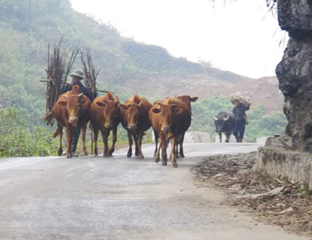 In the last 10 years living conditions in Ha Giang province have improved, thanks in part to the breeding cow program. To be able to give a huge livestock herd enough qualified fodder, the Meo Vac administration has launched a grass growing program in every commune. Local people have made the most of roadsides, garden margins, and any other place that isn’t being farmed to grow grass.