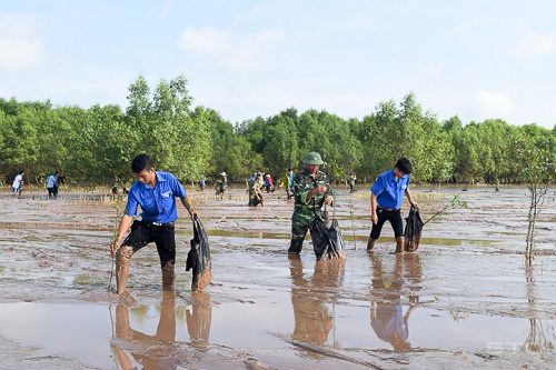 They cleaned up litter and planted mangrove trees to protect land from rising sea levels. The youth union of each locality has developed specific action plans to get young people to participate in environmental protection programs.