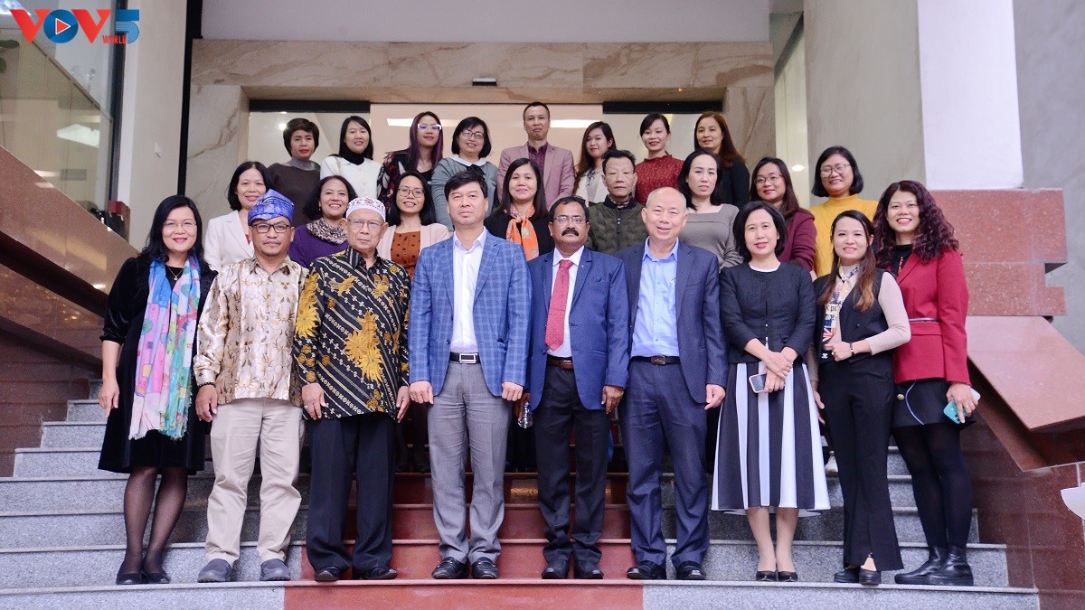 Three of the winners of the “What do you know about Vietnam 2020?” contest - Rabi Sankar Bosu of India (third from right), C.R. Nurdin of Indonesia (third from left), and Rudy Hartono of Indonesia (second from left) - at the award ceremony at VOV5's office in Hanoi on December 27, 2022. (Photo: Manh Quynh/VOV5)