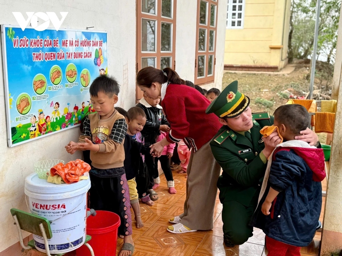 Long Sap border guards’ contributions from their salaries to provide lunch for the children are already a valuable gift. But the the act of climbing up the mountain to the school to personally cook and care for the children has been priceless. Lieutenant Mac Van Quan, leader of the mass mobilization team, told VOV: "Being able to provide the children with delicious meals that we cook is truly meaningful. When I see the children eating well, it makes me very happy. Knowing that they are healthy and able to study and grow—this is a great happiness."