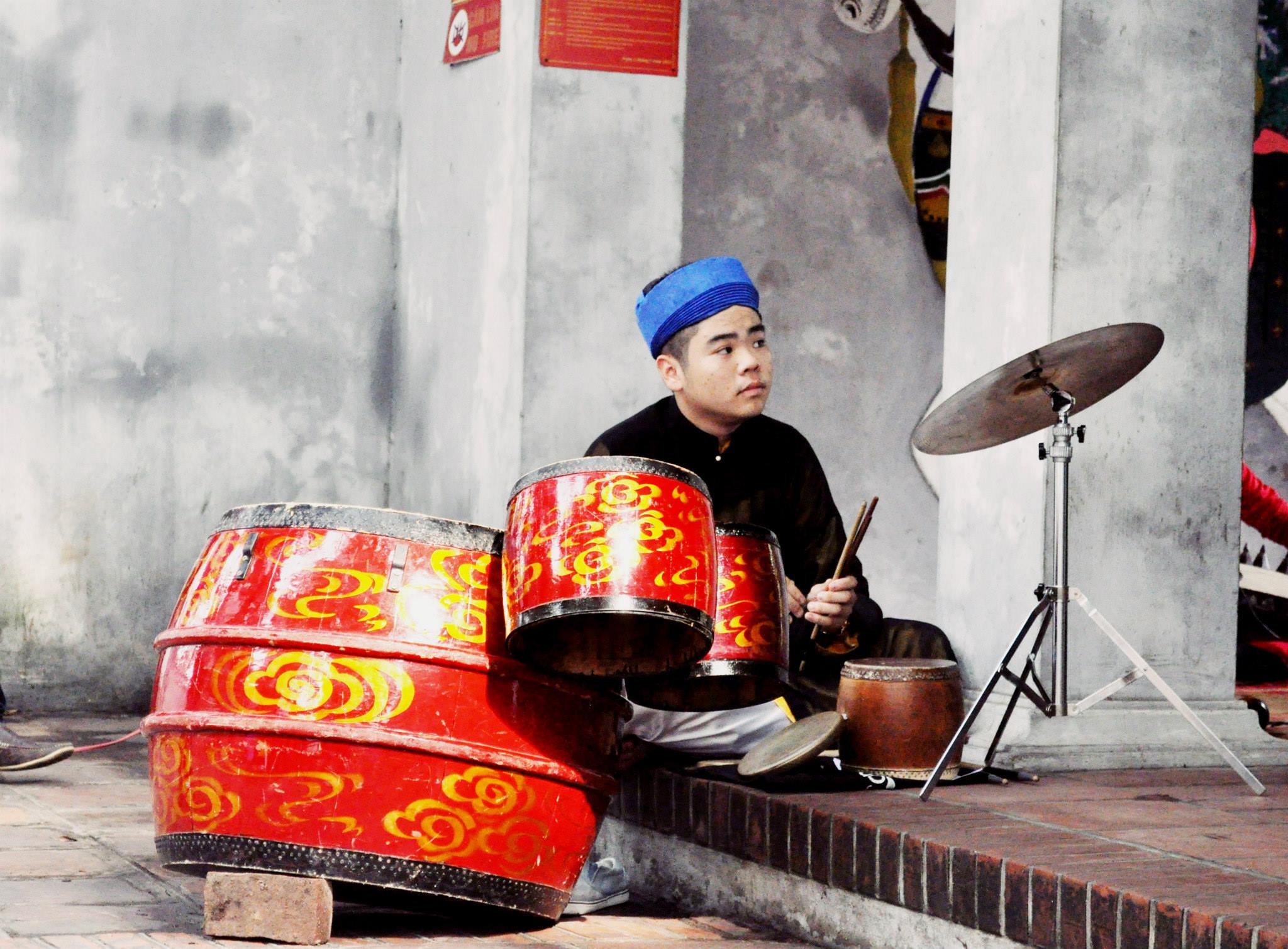 The passionate tunes and lyrics of cheo songs have followed cheo artist Van Ve all his life. At the age of 81, he is still passionate about “cheo”. When he was 8, his father taught him to play a percussion instrument to accompany cheo songs. The vibrant sound of the cheo drum and the melodic cheo tunes attracted him. He joined a professional cheo troupe and stuck with the art throughout his life. “I followed my father to sing cheo from the age of 8. My father was the 3rd generation Cheo singer and I’m of the 4th generation. I sang all the time, even singing while playing the drum. I often practice the songs of my predecessors,” Ve said.