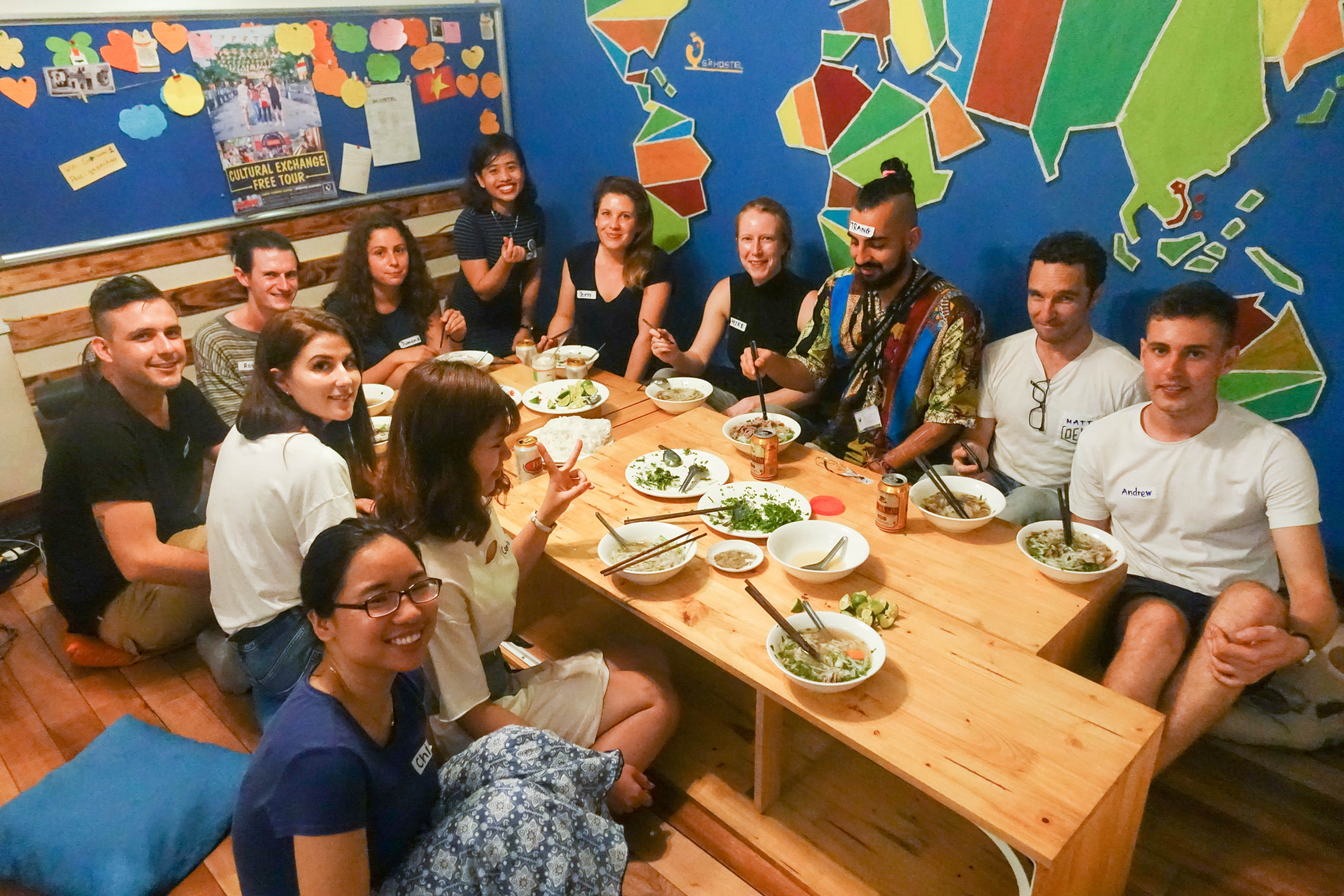 That’s what Simon Heldmayer from Germany said when being asked about how he knows about “Phở”. People often heard about “Phở”, from social media or their family or friends who once visited Vietnam, but many of them never tasted the dish, or know how it is made. The cooking class teaches the participants this famous dish in just 1 three hour-long class. The schedule for class is flexible so participants can join in whenever they have time, Ho Hoai Thuong, or Alice, founder and CEO of Ga Hostel and Travel, said: “We have 2 concepts. During the weekend, we cook some complicated dishes like Phở or Bun Cha. It takes more time and it should be organized in a big group. We want to make it more like a community event, not really for profit. It’s not only about the cooking skills, we also tell them the stories behind the dishes. In addition, we also have the daily concept, in which we teach them how to cook more normal everyday Vietnamese meals.”